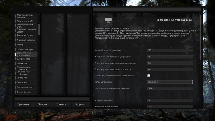 на них особо останавливаться не будем. единственное что я бы отметил, что в настройках мода я всегда выкручиваю лут патронов на максимум, т.к. меня всегда раздражало, что непись палит по тебе пол цинка, а лутаешь его, у него 3 патрона. эта настройка позволяет лутать с неписей 1-3 полных магазина.