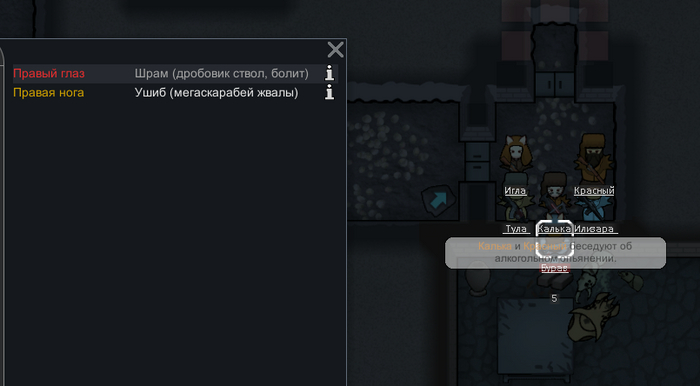 Народ отлёживается и лечит травмы, Игла на охоте.