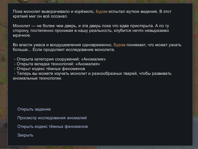 Когда все уже уходили с поля боя - нам в спину пахнуло жуткой силой. Обернулись, и увидели, что странный монолит силы оживает! Не зря когда-то про него Буру снились кошмары (12 лета 5500г). Видимо, кровь убитого итакина, прятавшегося за ним, его пробудила... Не стоит ждать от такого пробуждения ничего хорошего (привет @OldBiker52, #comment_328996475 - вот и включил контент из аномалии в прохождение).