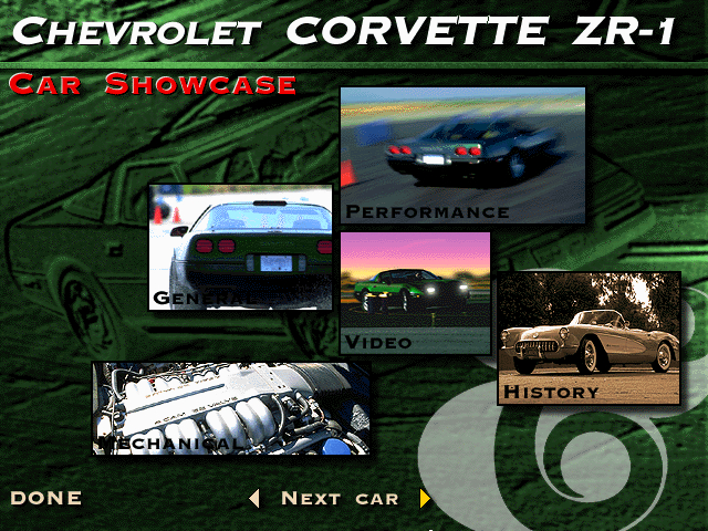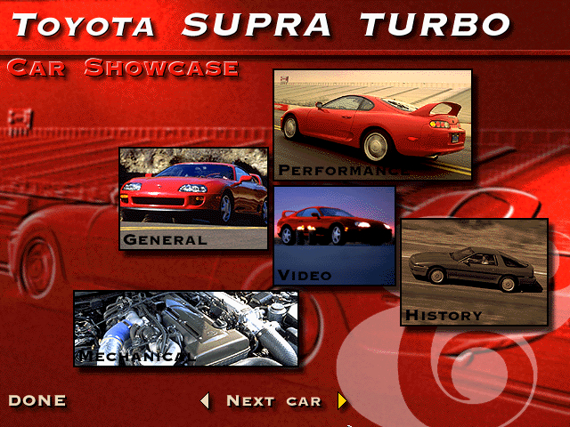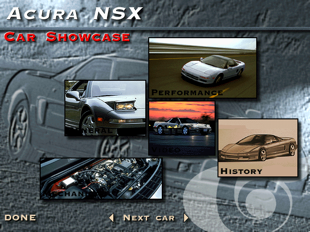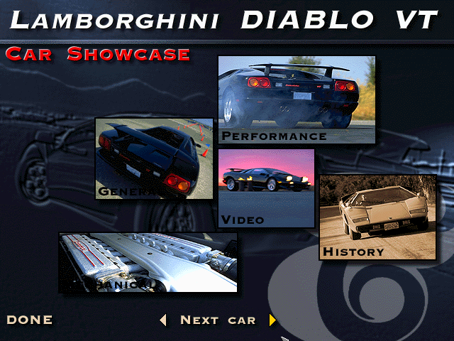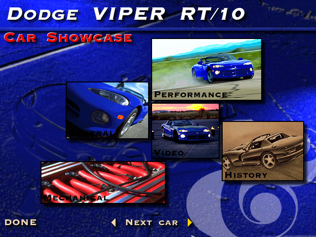 Как же компенсировать низкую детализацию авто? Правильно, добавить детализации в меню. А если в меню отсутствует 3D-визуализация? Добавить реализма, в виде настоящих фотографий и приправить это большим количеством технических характеристик. Для каждой машины предусмотрен собственный интерактивный «шоурум», состоящий из 5 разделов: