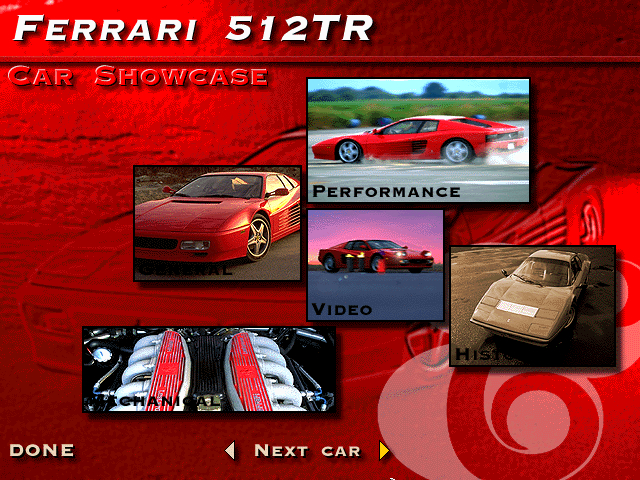 Однако все меняется, когда мы меняем обзор на вид от первого лица. Да, здесь есть вид из салона автомобиля, и это круто. Выглядит «реалистично», т.к. интерьер - это наложенный спрайт из реальной фотографии салона. Конечно, не обошлось без перегибов. Так, например, у Lamborghini Diablo в салоне присутствует большая реальная тень от стойки, а на приборке Ferrari горят все контрольные лампы, в том числе и «Check engine»: