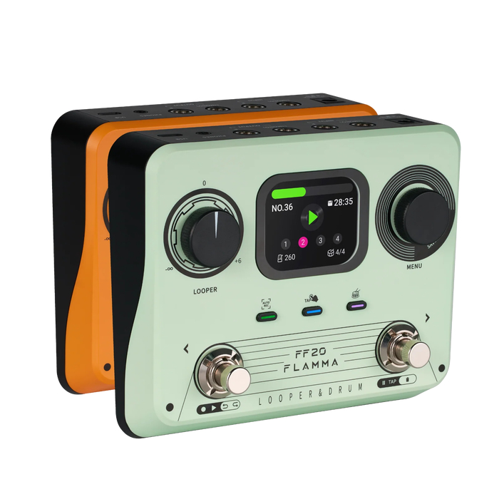 Мощный комбайн для гитаристов, объединяющий лупер и драм-машину в компактном корпусе оранжевого иди зеленого цвета размером 136x110x46 мм. Устройство оснащено 2-дюймовым дисплеем и пишет звук с аудиофильским качеством 44.1 кГц / 24 бит, что исключает потерю частот и динамики. В памяти можно сохранить до 100 независимых петель общей длительностью 300 минут — этого хватит на полноценный концертный сет.