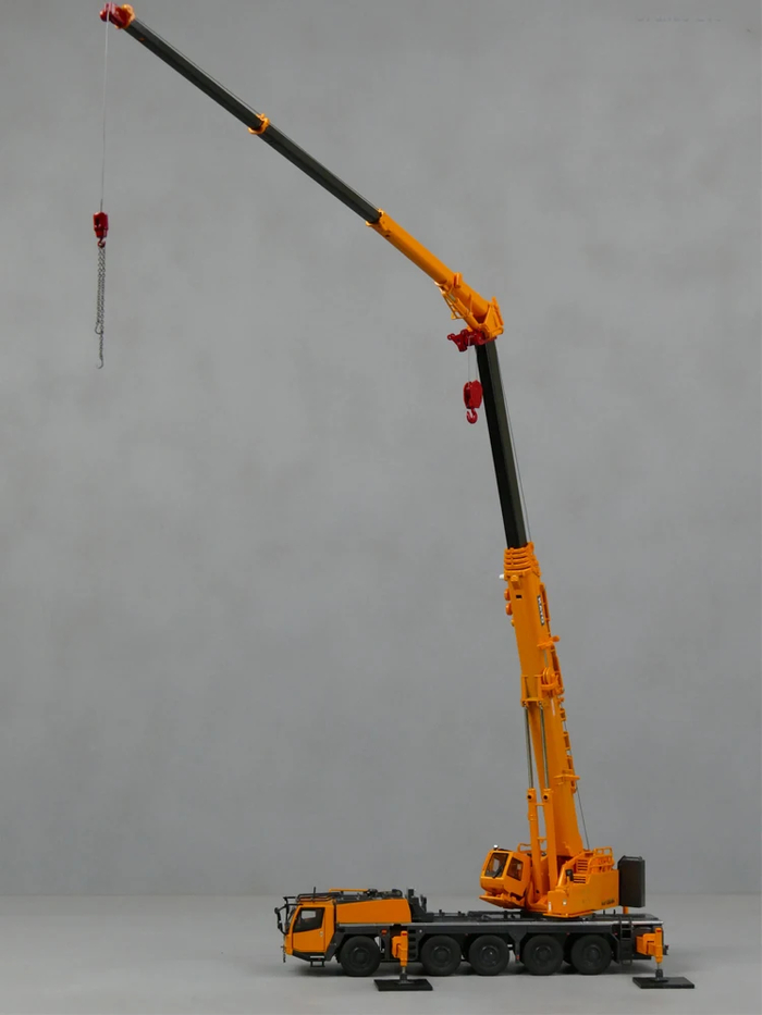 Модель оснащена двумя крюками и отдельными противовесами для реалистичности. Обе кабины (водительская и крановщика) открываются вручную. Высокая степень проработки делает эту модель интересной как для коллекционеров спецтехники, так и для любителей масштабного моделирования.