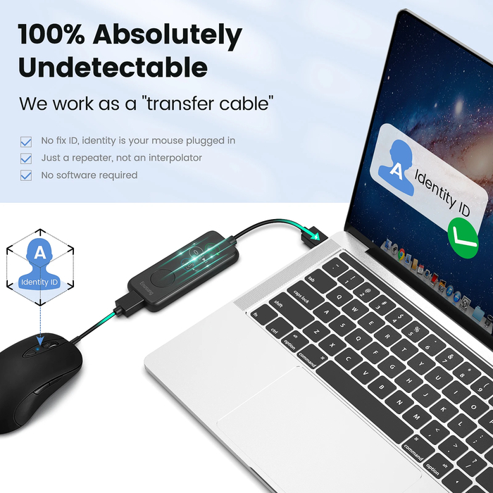 Гаджет не определяется системой как отдельное оборудование, оставаясь "невидимым" для специального ПО, которое отслеживает вашу активность в течение рабочего дня. Работает как с проводными, так и с беспровожными мышами.