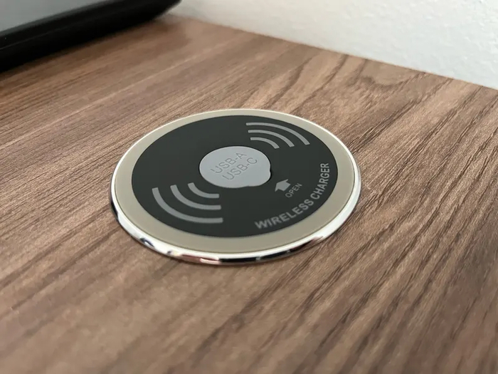 Беспроводная зарядка, которую можно встроить, например в столешницу или прикроватную тумбочку. Это позволит спрятать ее провод, которым она подключается к розетке. Если мобильное устройство не поддерживает беспроводную зарядку, то под заглушкой зарядки находятся разъемы USB Type-A и USB Type-C. Сама же заглушка нужна, чтобы сделать видимую часть устройства водонепроницаемой, что особенно важно, если устанавливать ее в стол. Мощность зарядки - 15 Вт.