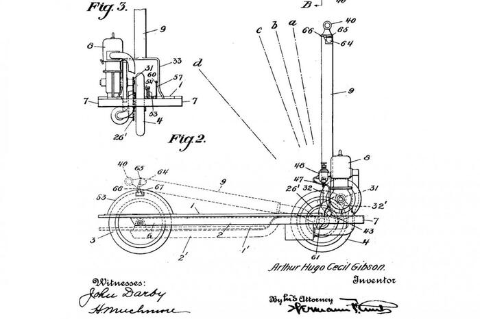 Изобретатель Артур Хьюго Сесил Гибсон подал заявку на патент самодвижущегося транспортного средства в 1913 году.