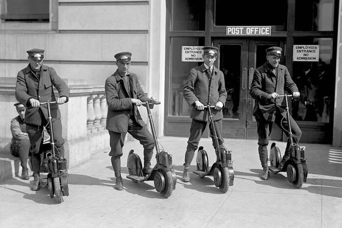Autoped пробовали приручить для полезной работы. Лучше всего с этим справилась почтовая служба Нью-Йорка, которая раздала мотосамокаты почтальонам.
