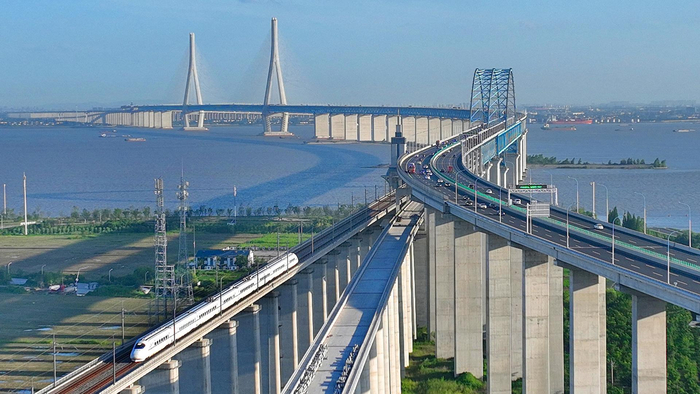 Автомобильно-железнодорожный мост Шанхай-Сучжоу-Наньтун через реку Янцзы является первым в мире мостом двойного назначения с пролетом более 1000 метров, спроектированным и построенным самостоятельно Китаем.