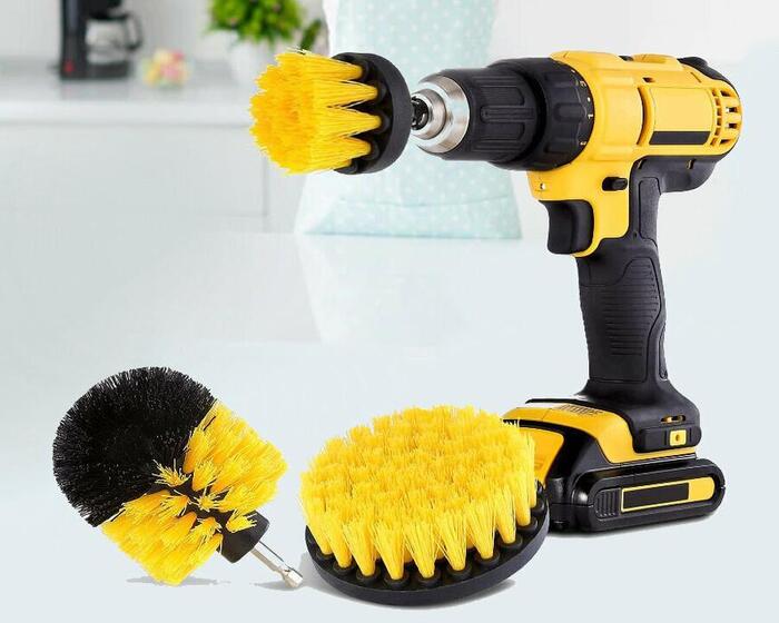 В комплект включены три щетки с шестигранными хвостовиками, пластиковым корпусом и жесткими щетинами из нейлона и мягкая ветошь для мытья.
