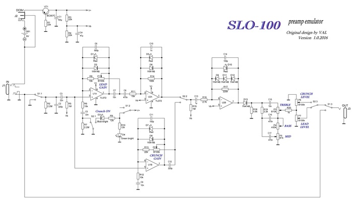 Преамп - эмуляция SLO-100 на операционных усилителях от TrueVal.