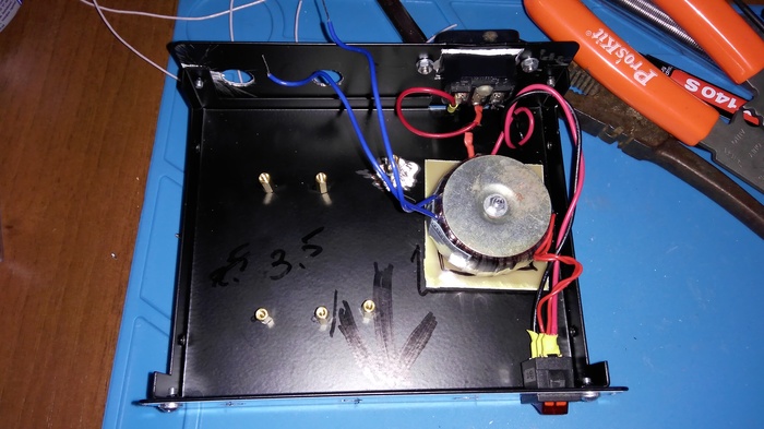 Преам готов, в комментарии еще фото добавлю. Переходим к оконечнику: платы уже запаяны, начинаем сборку в корпусе с установки трансформатора.