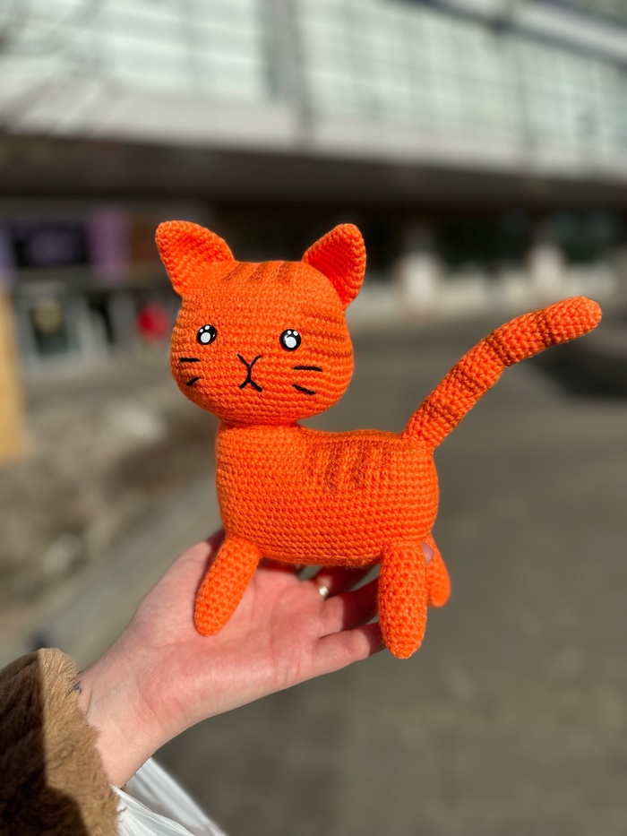 Всем привет. Я подсела на вязание котиков и спешу поделиться своими успехами. Это не последний мой котик, я не могу остановиться, ведь они такие милые. В этот раз я решила немного изменить глазки, обычно я ставлю просто черные, но в этот раз решила попробовать глазки с бликами. И мне очень понравилось, они такие милые. Думаю, что закуплю таких побольше. Игрушка становится как будто живой.