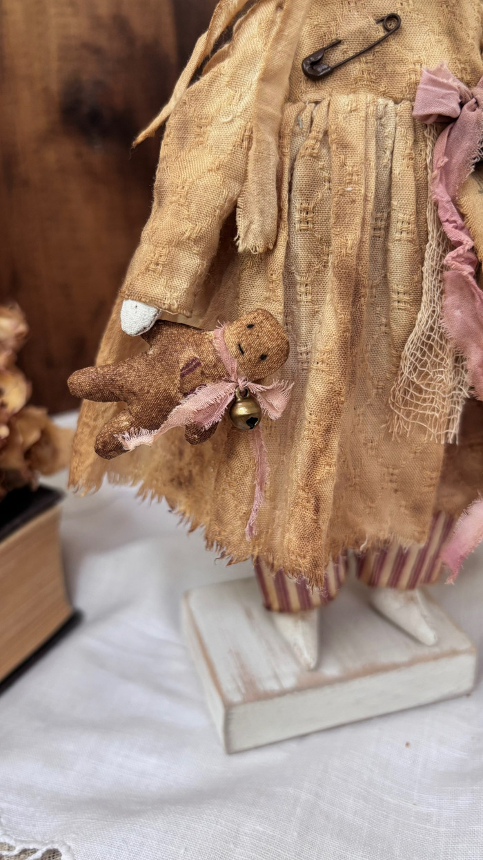 Грунтованный текстиль. Снимается с подставки, может сидеть с опорой. С пряником неразлучны :)