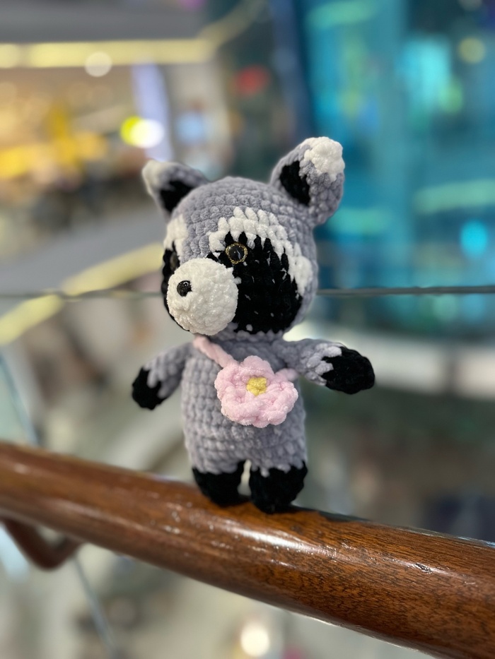 Это игрушка из коллекции игрушек с сумочками. Высота игрушки 22 см. Пряжа Himalaya Dolphin baby. Связана крючком 3 мм. Глаза на безопасном креплении.
