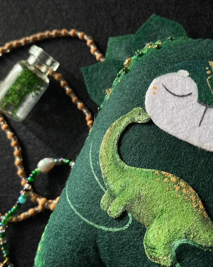 Вышита нитками мулине на фетре.Сзади застёжка. Внутри пластиковая основа, поэтому брошь жесткая, не гнется.