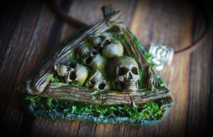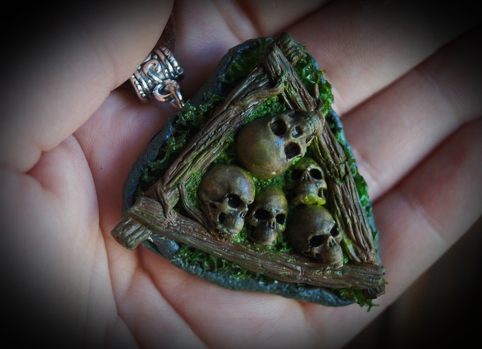 Кулон мшистый и таинственный из полимерной глины 4*5см