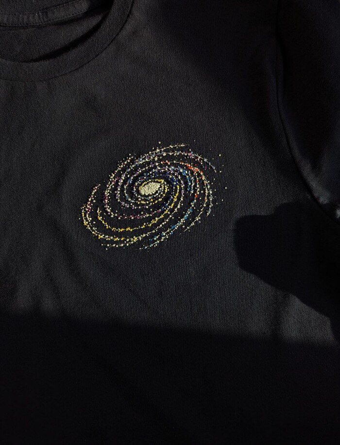 Футболка 100% хлопок, цветные нитки мулине и некоторое количество часов свободного времени.