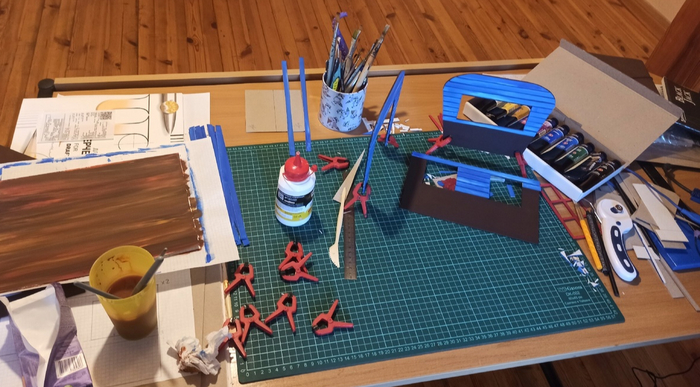 Потери в этот раз: исколотые проволокой пальцы, куча моего терпения, неимоверное количество ошметков картона странной формы и НАКОНЕЦ (сколько лет можно ждать??!!) боевое крещение скальпеля о мой палец. Но ничего страшного)