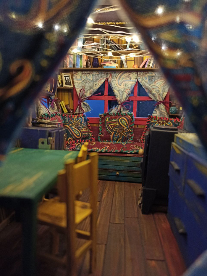 Все началось с того, что мне захотелось сделать что-то не совсем из головы, а по инструкции. И я взяла за основу вот это видео. Думала, что получится быстрая и простенькая работа на пару недель, но... но я делала ее больше года. И, конечно же, она уже совсем не похожа на первоначальное видео. Естественно, большую часть времени она пылилась где-то в углу, но количество мелких деталей, переездов из города в город, поломок и т.д. почти сломили мой дух! В итоге пострадала только утварь, которую я думала лепить из глины, но к концу проекта уже так хотела его закончить, что попросту забила на это... Ну и отсутствие "стёкол" в окнах. Я настолько не умею ждать, что приклеила занавески раньше пластика и от него пришлось отказаться.