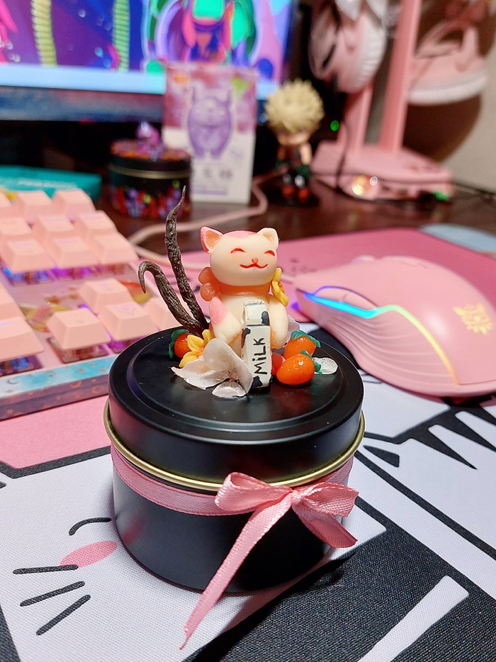 Розового котика я решила подарить своей подруге, она меня ещё с нового года просила сделать ей свечу. Аромат будет ваниль, сливки, земляника.