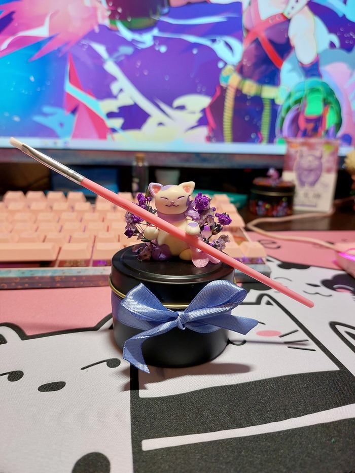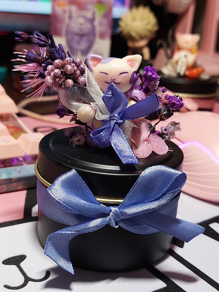 Ну а лавандовый котик будет с лавандой, всё просто и очевидно. Букетик у него из лапок можно убрать и дать любую вещь, подходящую по размеру.