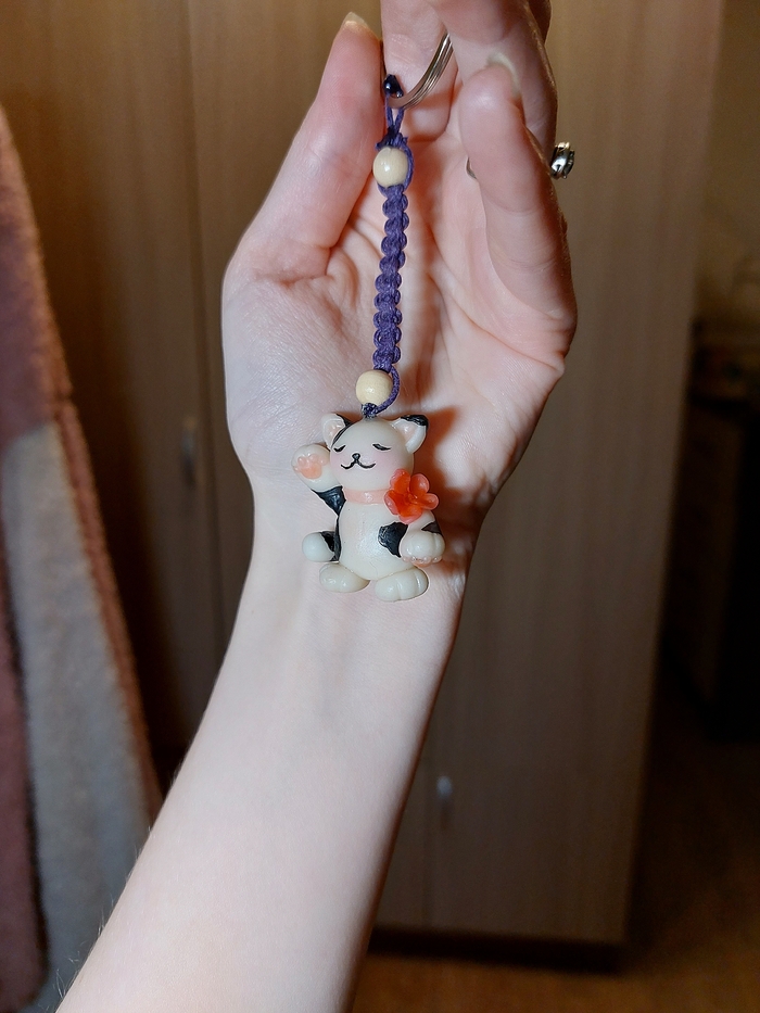Вообще всего я слепила 3 кота. Но один пошёл младшей сестре на брелок, уж очень она просила😁