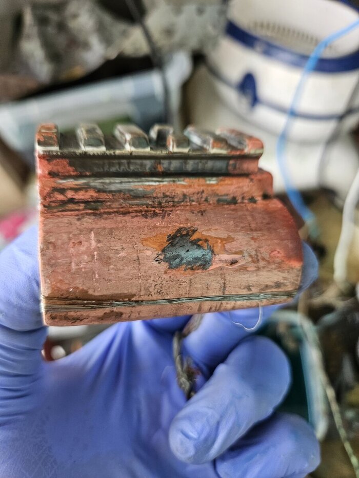 Начал работу с деревянных деталей, разобрал их, удалил старую краску и провел оценку состояния. Краска удалялась очень тяжело, очень много въелось в само дерево.