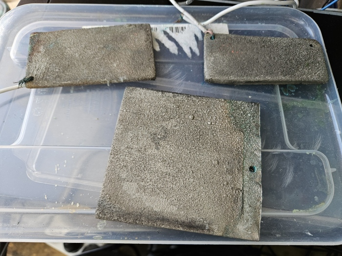 Ну и раз решил разойтись по полной, то решил обработать и металлические части. Посмотрел ролик по хромированию, заказал реактивы, всё подготовил по инструкции и нихера не получилось. Собрал вот такую колонну с отлитыми свинцовыми анодами.