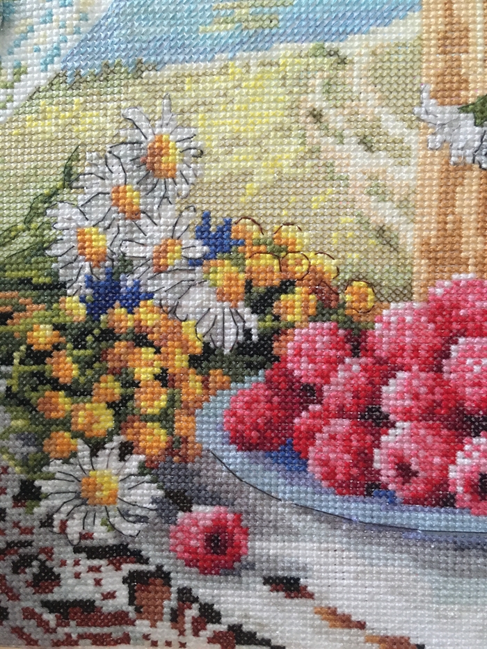 Вышивала практически два года, с перерывами на игрушки на пластиковой канве. Получилось не быстро)
