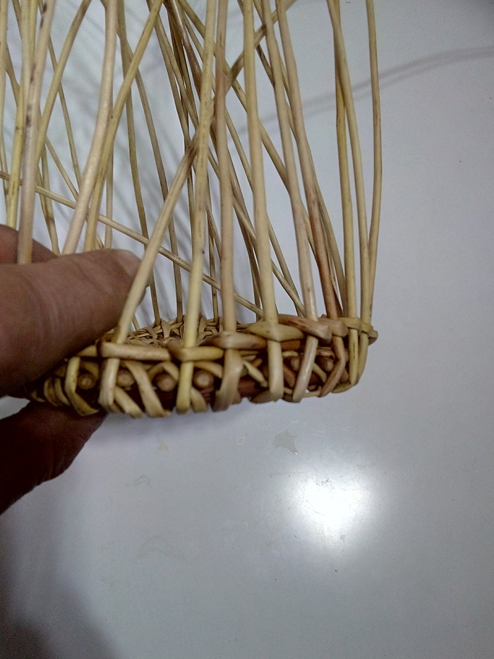Делаем овал. Ставим палочки. Заплетаем в двух прута. Кто знаком с историей плетения германских народов, сразу поймут откуда « ноги растут ». Подрезаем.