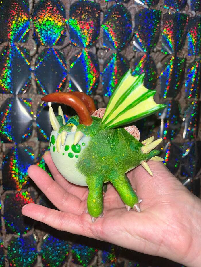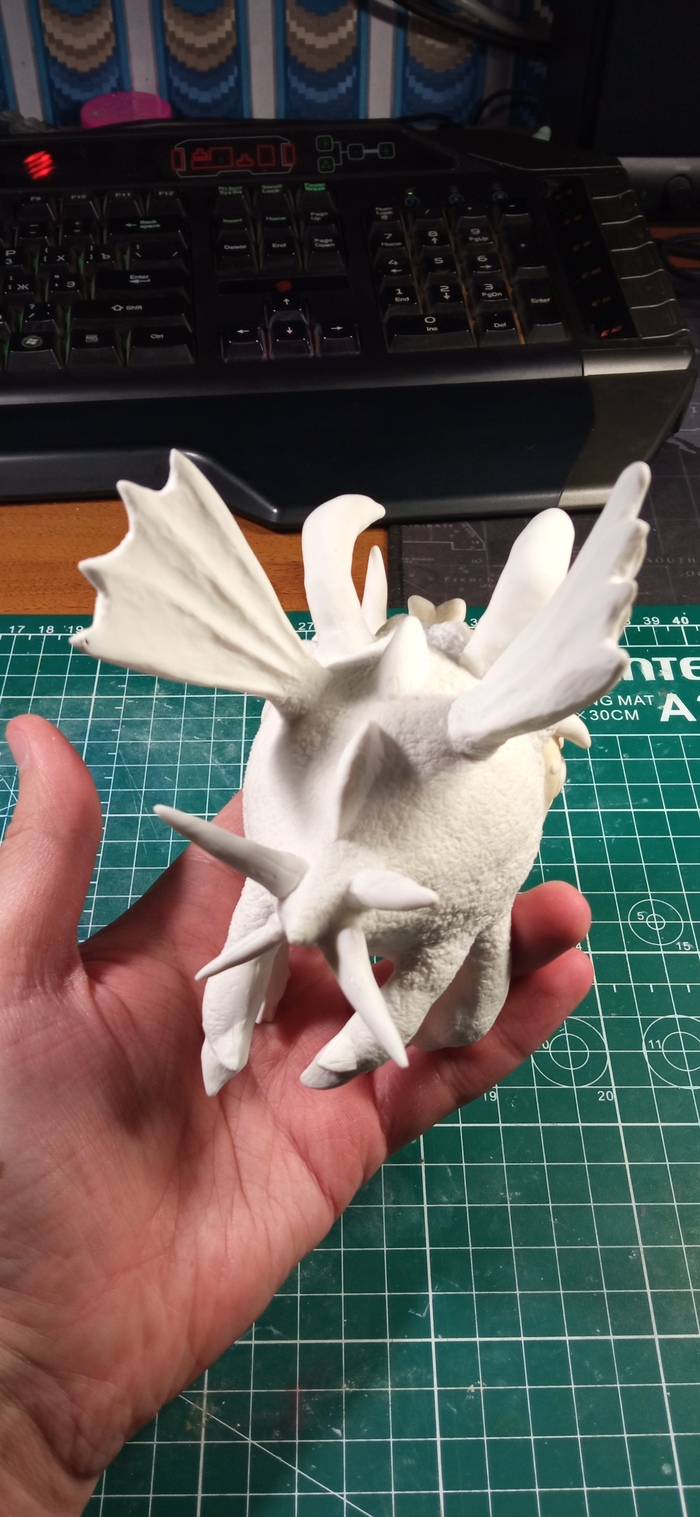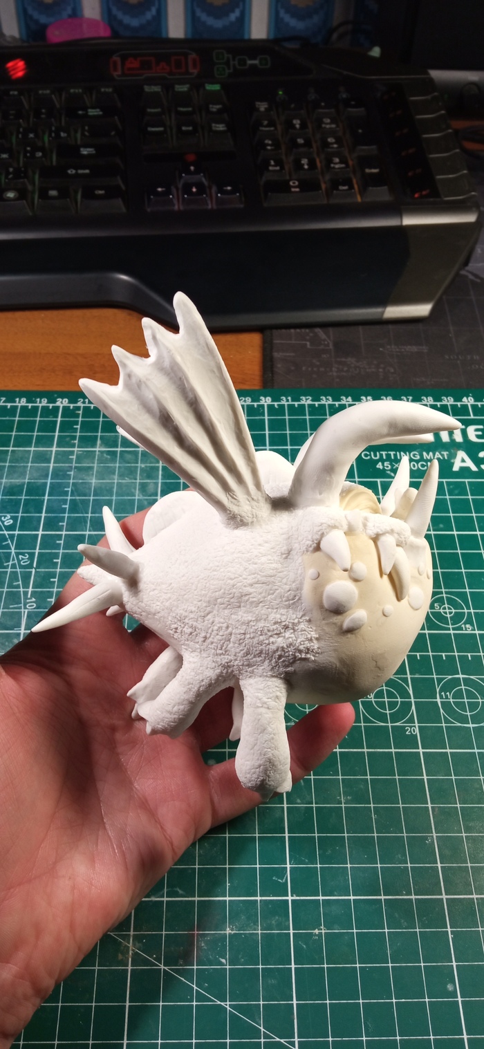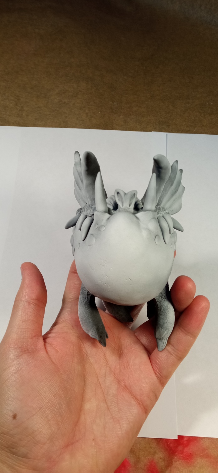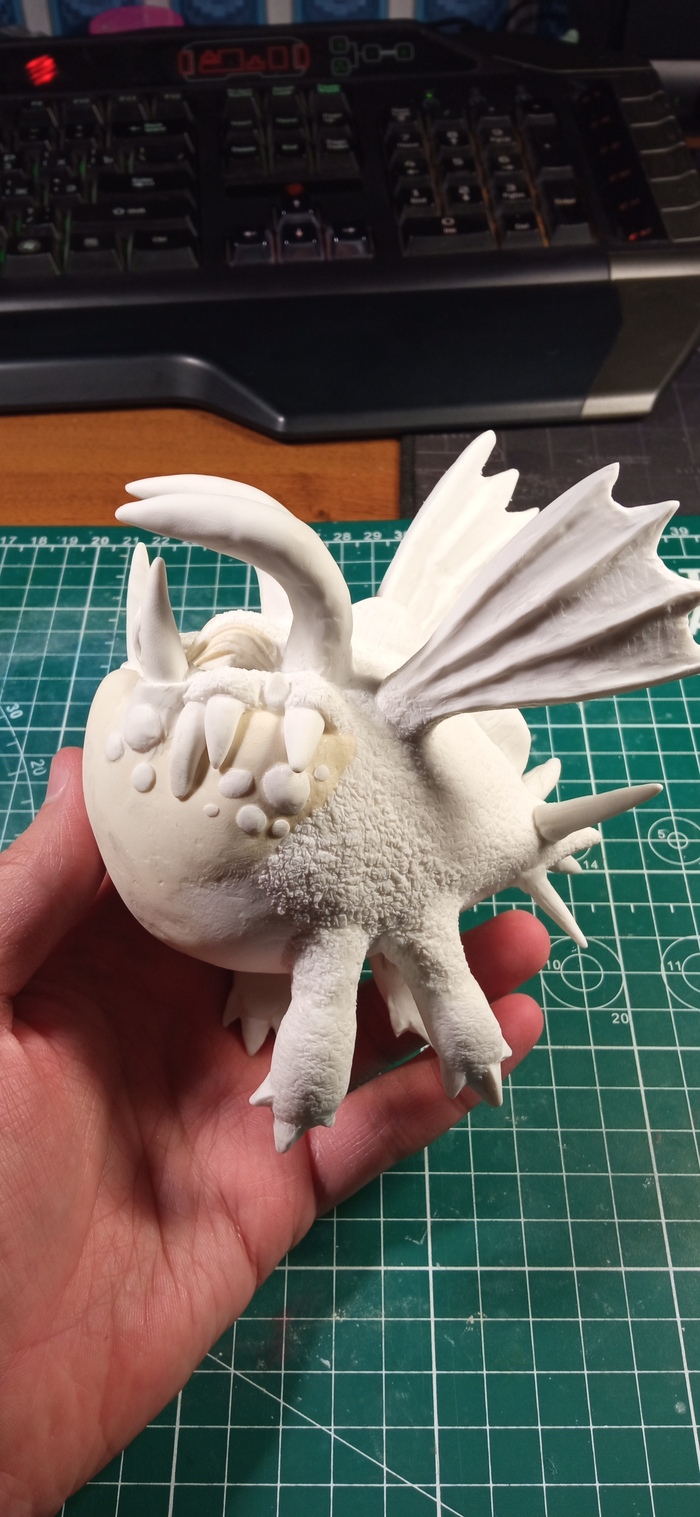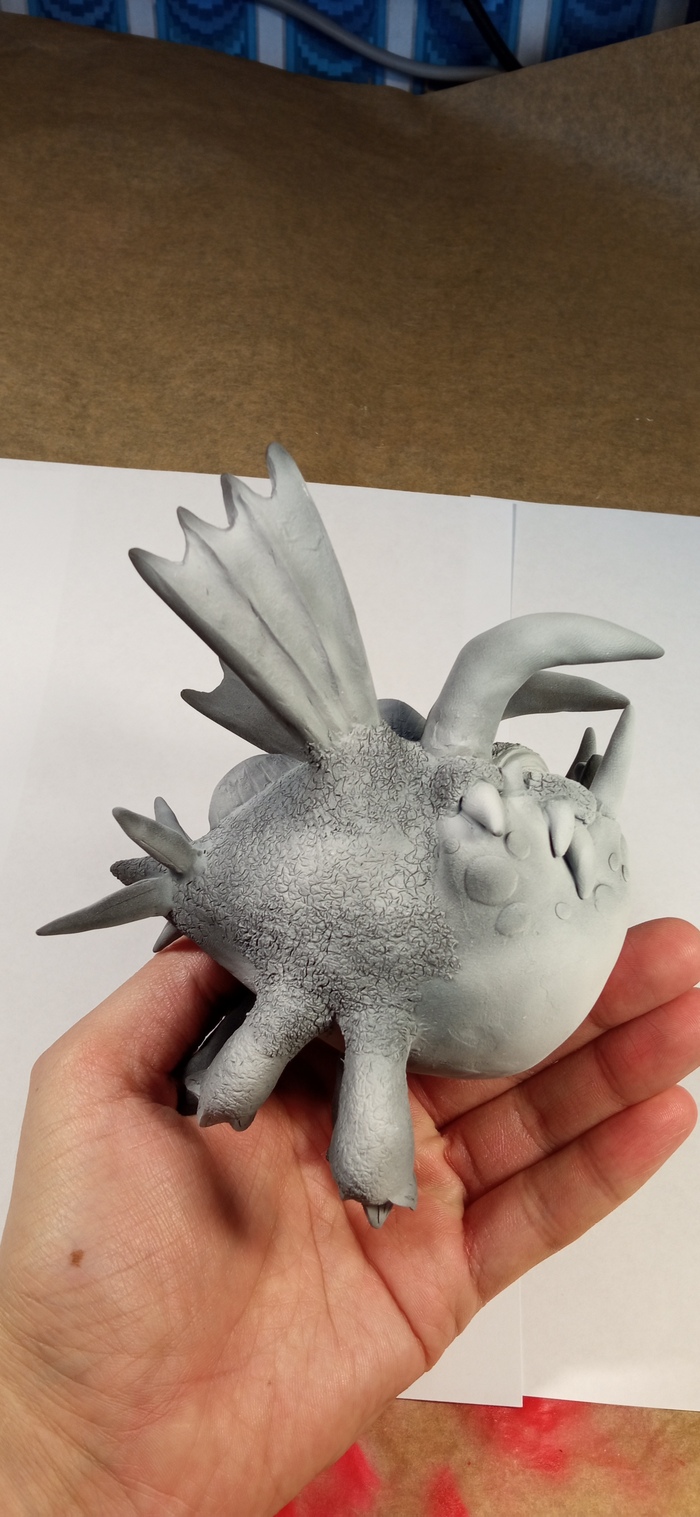 Дальше уже долепил оставшиеся детали: лапки, крылья, зубы, шипы, чешую.