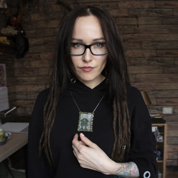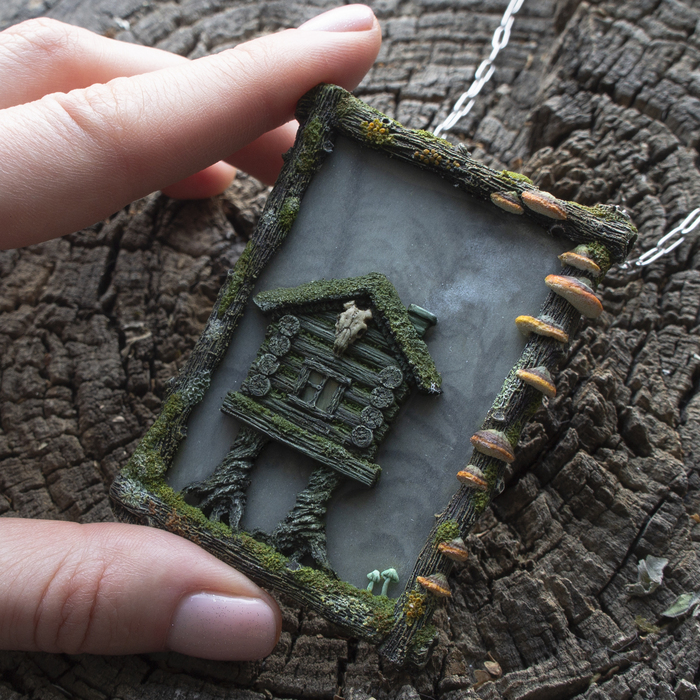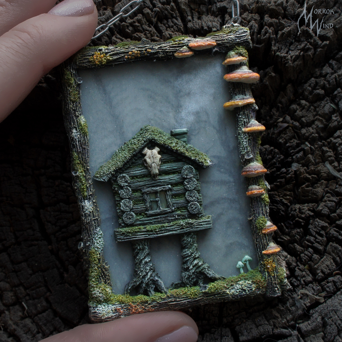 Многие , думаю, знают, что прототип данного сказочного жилища - довольно прагматичное сооружение специального назначения и ноги у неё вовсе не куриные, а окуренные пеньки, на котором стоит сруб. (Не буду тут писать статью на эту тему , тут всё же об украшениях (да, это кулон, кстати))