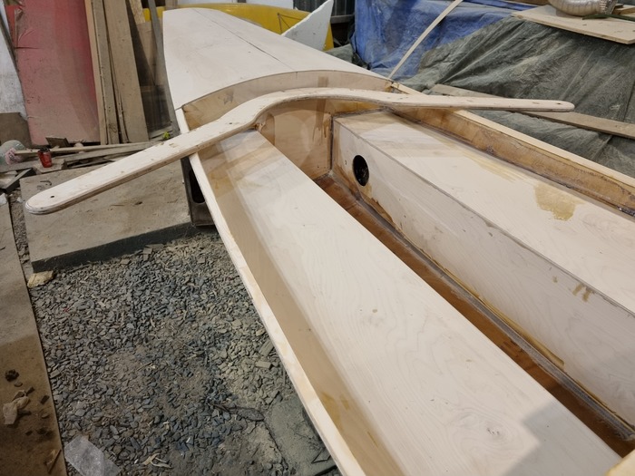 Перед заливкой палубы тщательно все пропитываю эпоксидной смолой и грунтую эпоксидным грунтом, причем вместе с листами палубы с внутренней стороны, т.к. после сборки это будет сделать тяжело.