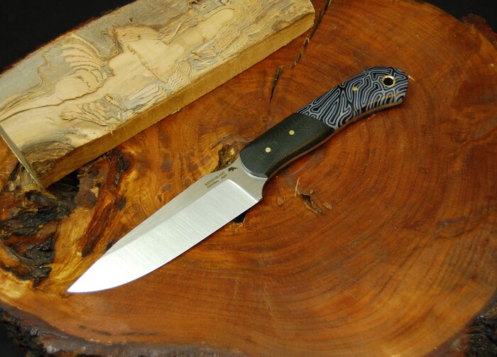Вторым сделал этот нож. Уже намного тщательнее подошел к монтажу рукояти. Тут без косяков)