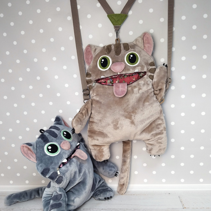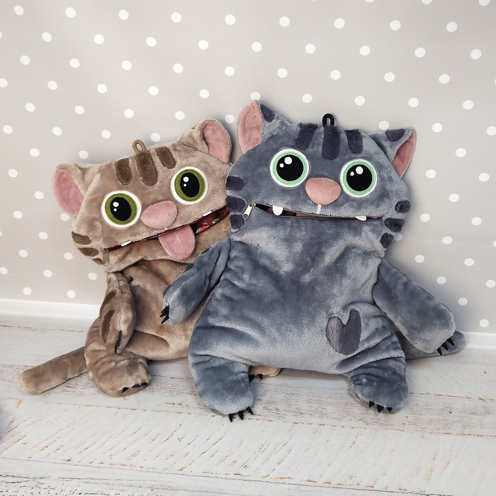 Котики сделаны в виде сумочкек, можно использовать как органайзер для мелких вещей или предметов одежды, а можно прикрепить лямки и таскать их как рюкзак, собирая удивление прохожих.