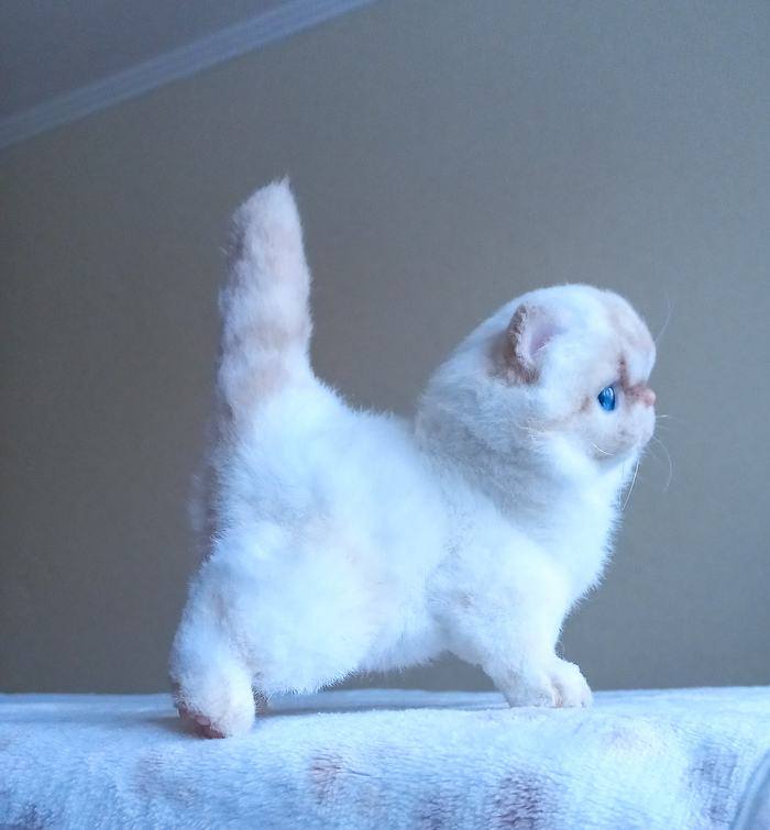 Котенок сшит из искусственного меха, с отличным подшерстком. На ощупь, как настоящий экзот. Плотный и нежный.