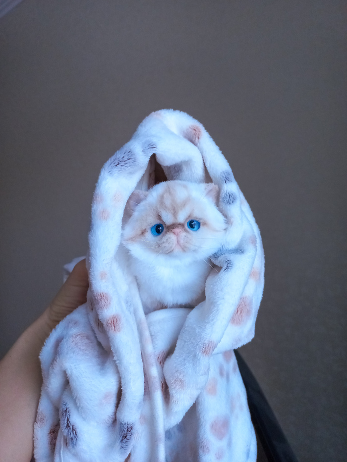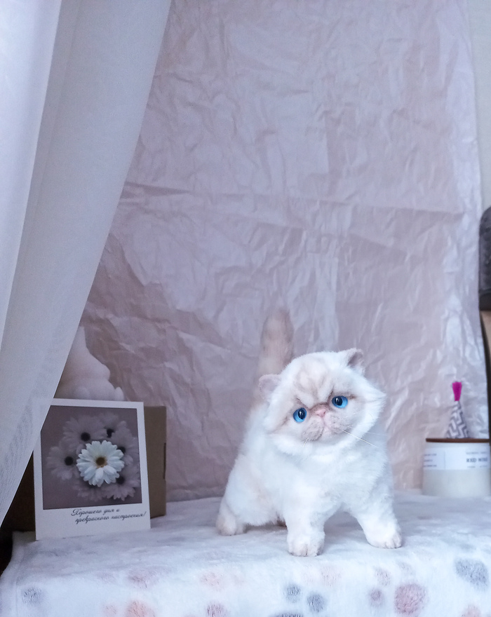 Привет пикабу! Обещала, больше никаких кудрявых котят, кошек и котов!). Обещанье выполняю. Хочу показать вам плоскомордика экзота. Маленький пушистый котенок экзот по кличке Тина 🤍