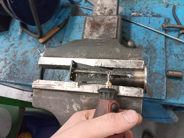 И обработал сварочные швы на опорах цилиндров дремелем.