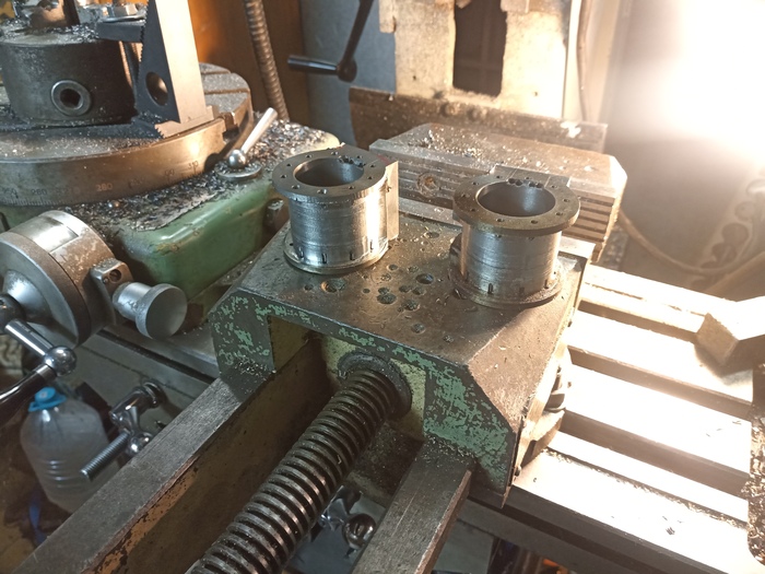 Для того, чтобы закончить цилиндры, нужно было проделать выпускные отверстия и отверстия для слива конденсата. А этого нельзя сделать, пока наружные поверхности не обработаны. С них и начал.