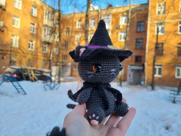 Из интересного: Пряжи на первого котика не хвало и я поехала в магазин уже за знакомым моточком пряжи, но приехав домой оказалось, что детали котика чуть светлее (словно выцветшие), однако я придумала способ, как сделать так, чтобы вся пряжа была "одного цвета" (вкратце, я делила нити на волокна и смешивала их, как бы "разбавляя" цвета").