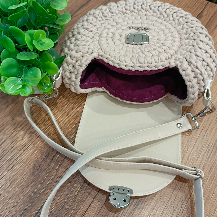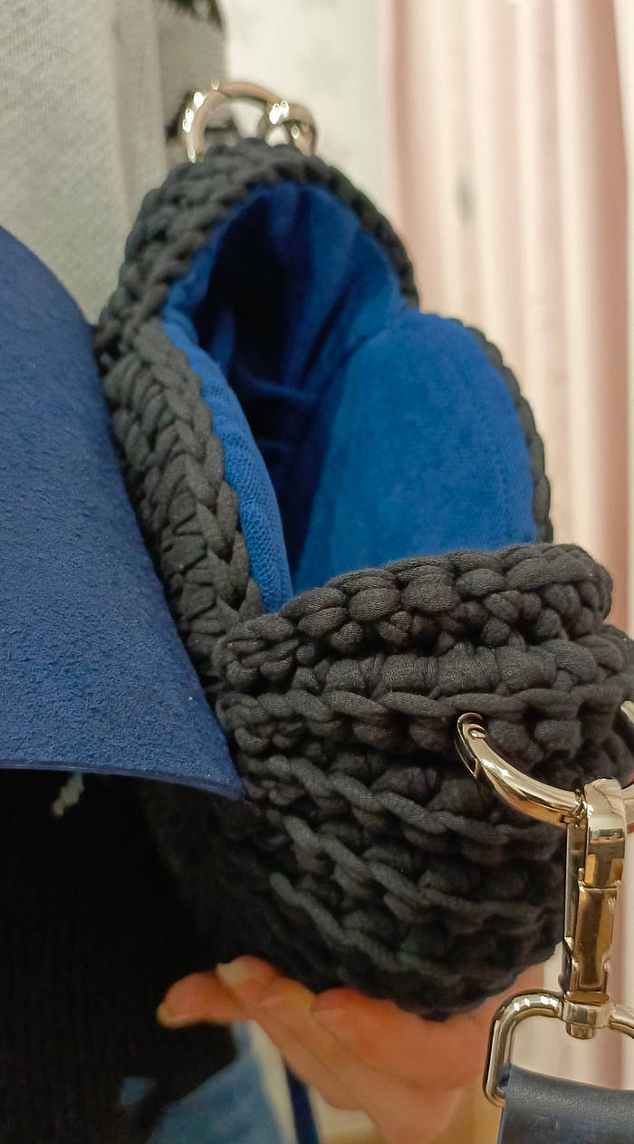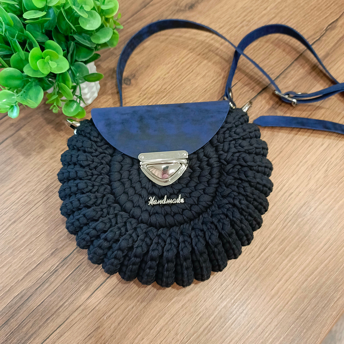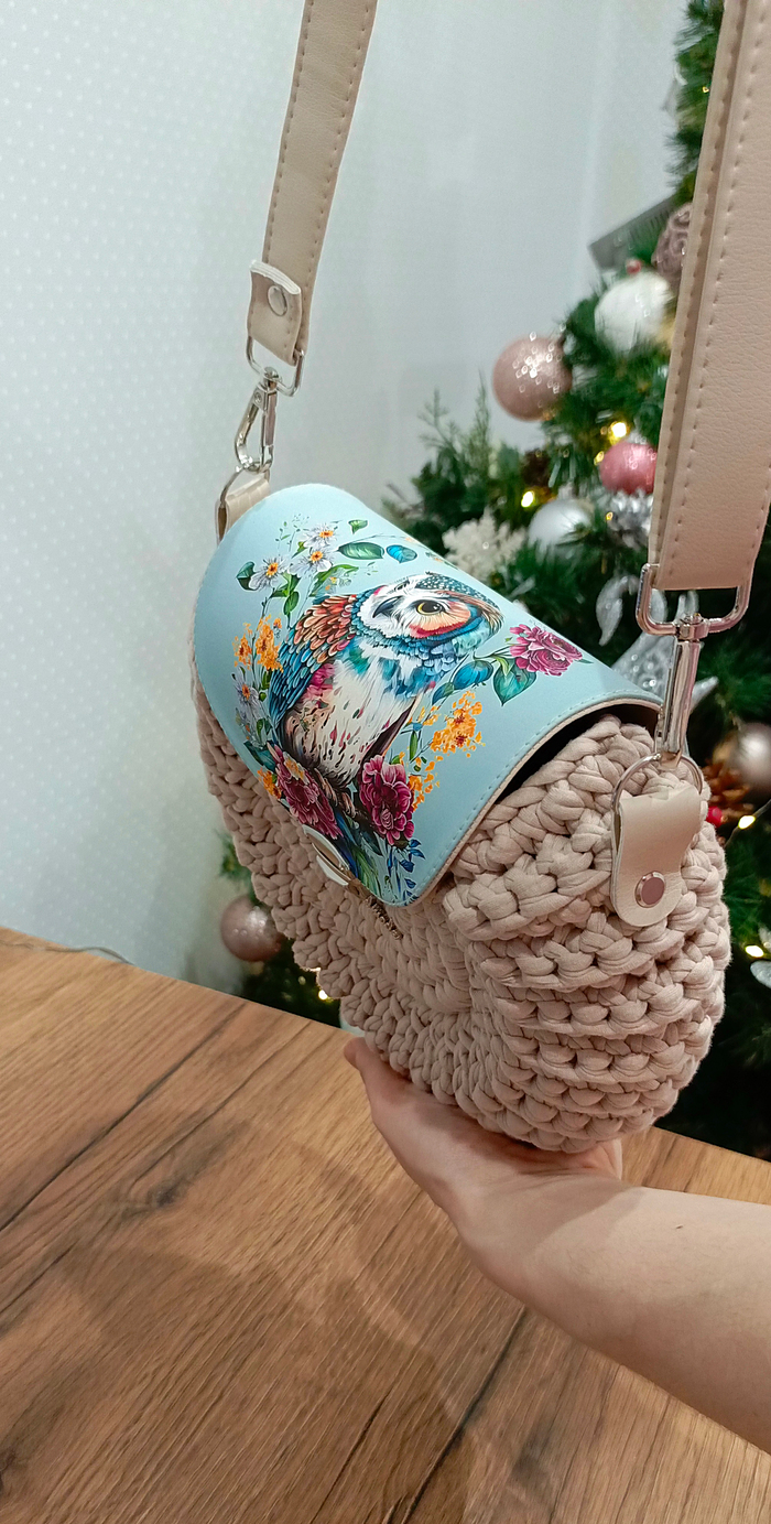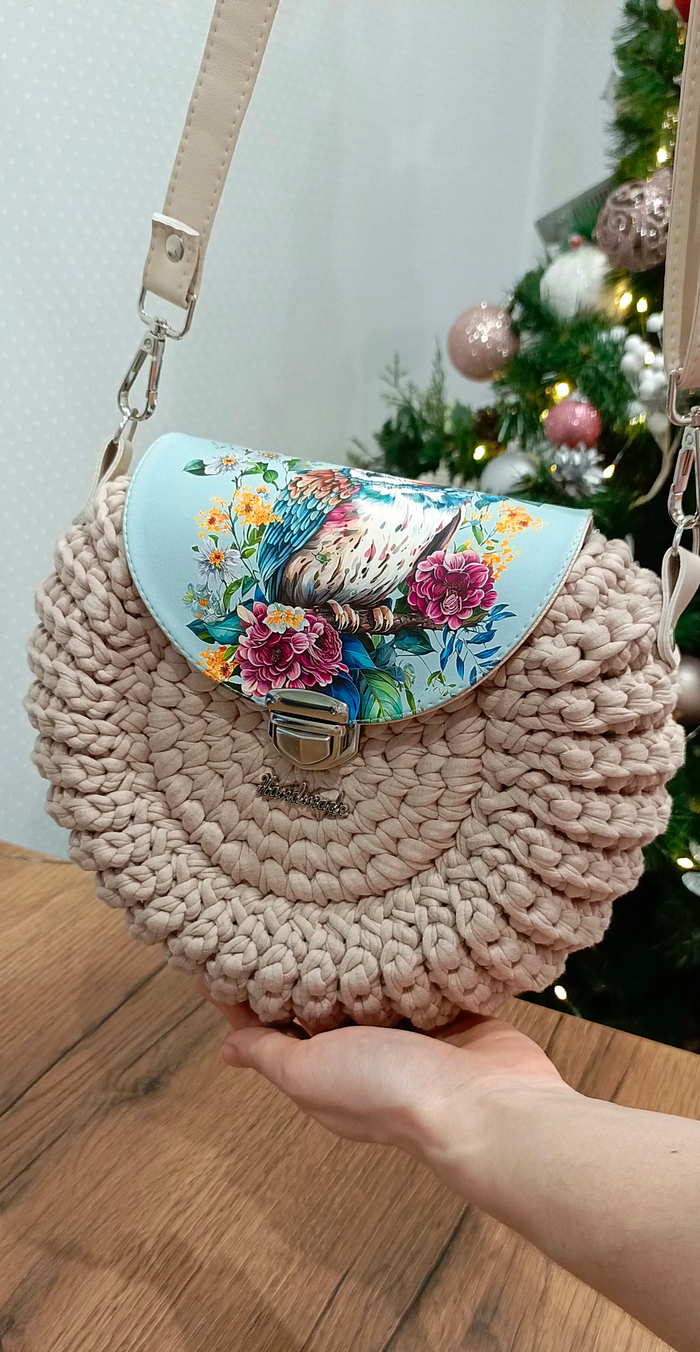Сумочки связаны из трикотажной пряжи, подкладка канвас, а клапаны и ремешки выполнены из кожи или экокожи.