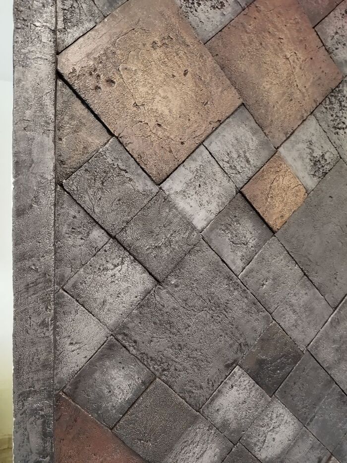 Мой знакомый, после долгой трудовой жизни на северах, решил вложить кровные в пару хрущевских однушек. Так как я люблю рукожопить и немного умею в дизайн и отделку, он подтянул меня. Все как всегда тривиально... Максимум оригинальности, износостойкости, ремонтопригодности при минимуме вложений. Времена сейчас, сами понимаете) Короче говоря, бюджетный ремонт😎 Так как хрущи имеют форму квадрата и большую обзорную стену модуля санузла, прямо по центру квартиры, я предложил запилить панно по средствам гипсовой плитки. Я занимался разработкой, производством, покраской и монтажом. Плитка в два размера и разная по высоте. Стены и плитка под лаком. Легко моется и подкрашивается, мало ли что, недвижимость коммерческая.