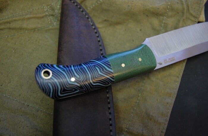 В данном ноже использована микарта зеленых цветов. Рисунок хаотичной микарты слегка похож на топографическую карту