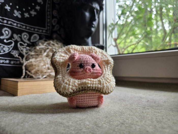 это заняло не очень много времени. Самым сложным оказался хлебушек: я ещё не очень хорошо подобрала пряжу, и хлебушек получился великоват для СВИНКИ.