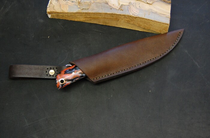 Кожаные ножны тоже нашего стандратного пошива, с двумя подвесами, жестким и свободным