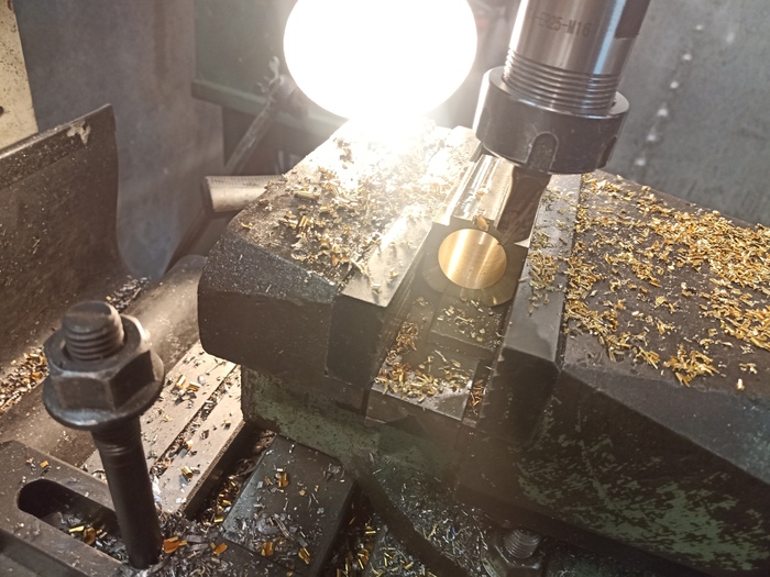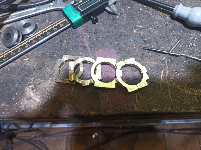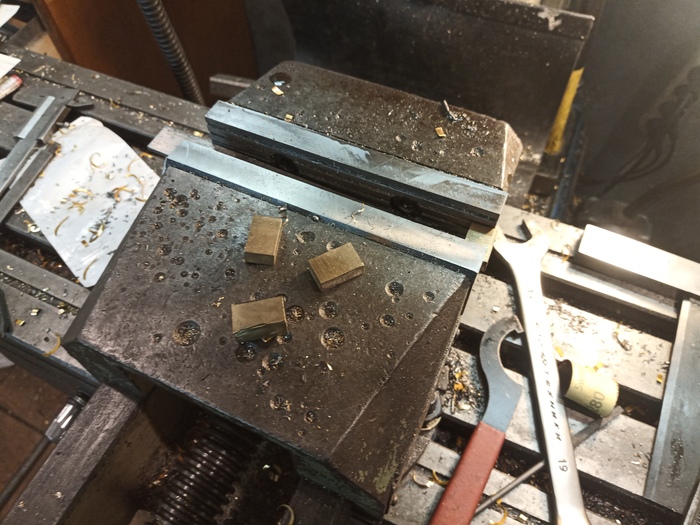 Самая расточительная операция. Полтора килограмма латуни ушло в стружку, что б получить четыре малюсенькие детали!