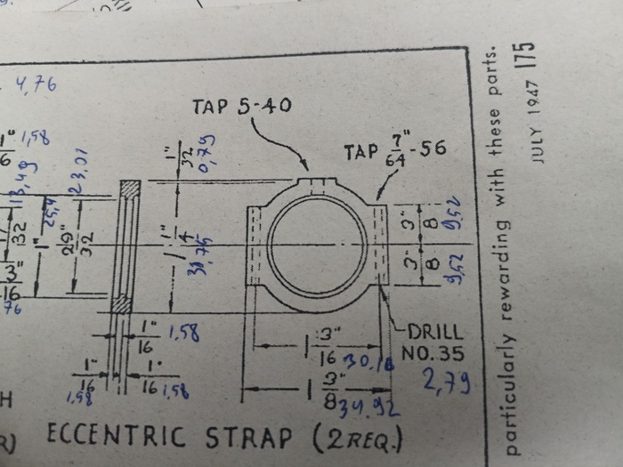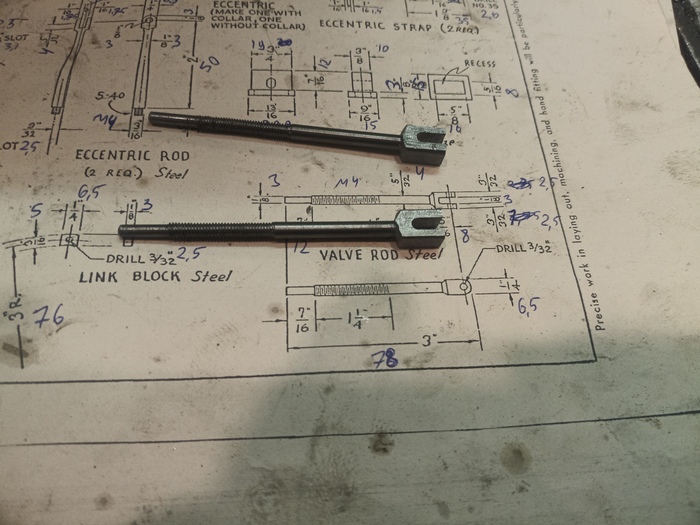 Начал я с шатунов парораспределения. Но с небольшим отступлением от чертежа, добавив бортики эксцентрикам вместо проточки в них.