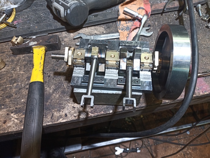Сами кулисы изготовил из бронзового листа, склеив два слоя и обработав вместе на поворотном столе, обеспечив полную симметричность, что важно. После чего они, а так же шатуны распределения и цпг были отшлифованы. Их головкам была придана уже более приятная глазу округлая форма. Кулисы так же были отшлифованы изнутри и ход сухаря стал плавным и без заеданий о следы обработки фрезой.