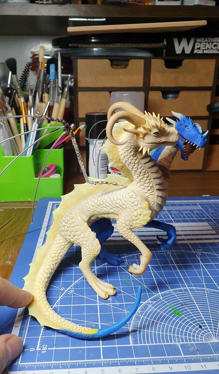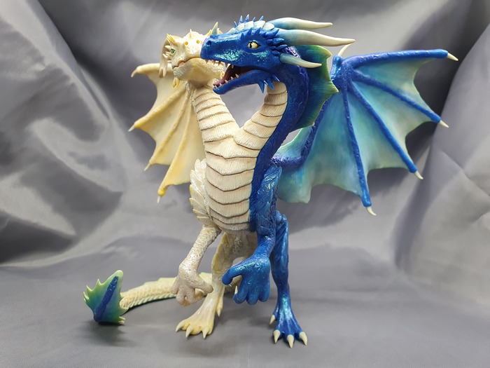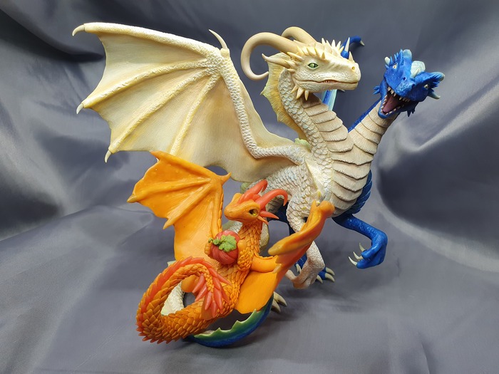 И уже готовый вариант сразу с рыжим малышом для сравнения, он был сделан в сентябре 2022г, а большой дракон был полностью доделан/докрашен в декабре 2023