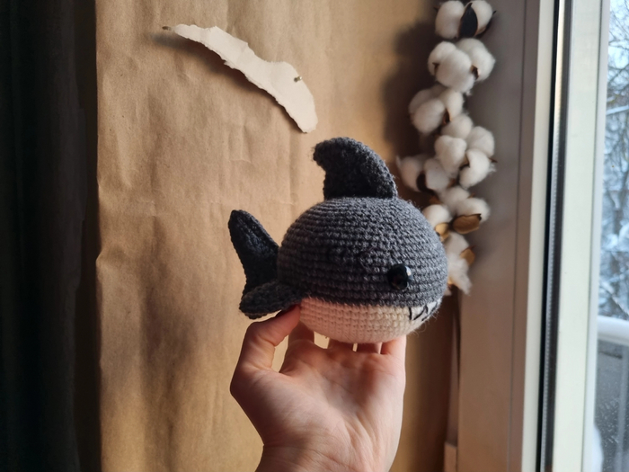 У меня был как раз довольно странный опыт с вязанием этой акулы, помню связала ее в наличие на ярмарку, но на следующий день она приобрела хозяина и сразу после этого я связала еще одну, и она снова уплыла от меня в добрые руки, после чего желание ее вязать вновь как-то пропало, ведь я думала, что ни одна акула так и не доживёт до ярмарки.